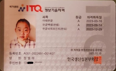 gtq포토샵 자격증과 itq(한글,엑셀,파워포인트) 자격증을 취득했답니다~~~~