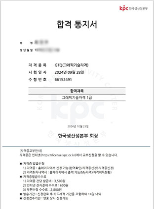 최** 님 다시한번 자격증 취득을 축하드립니다.~!!!